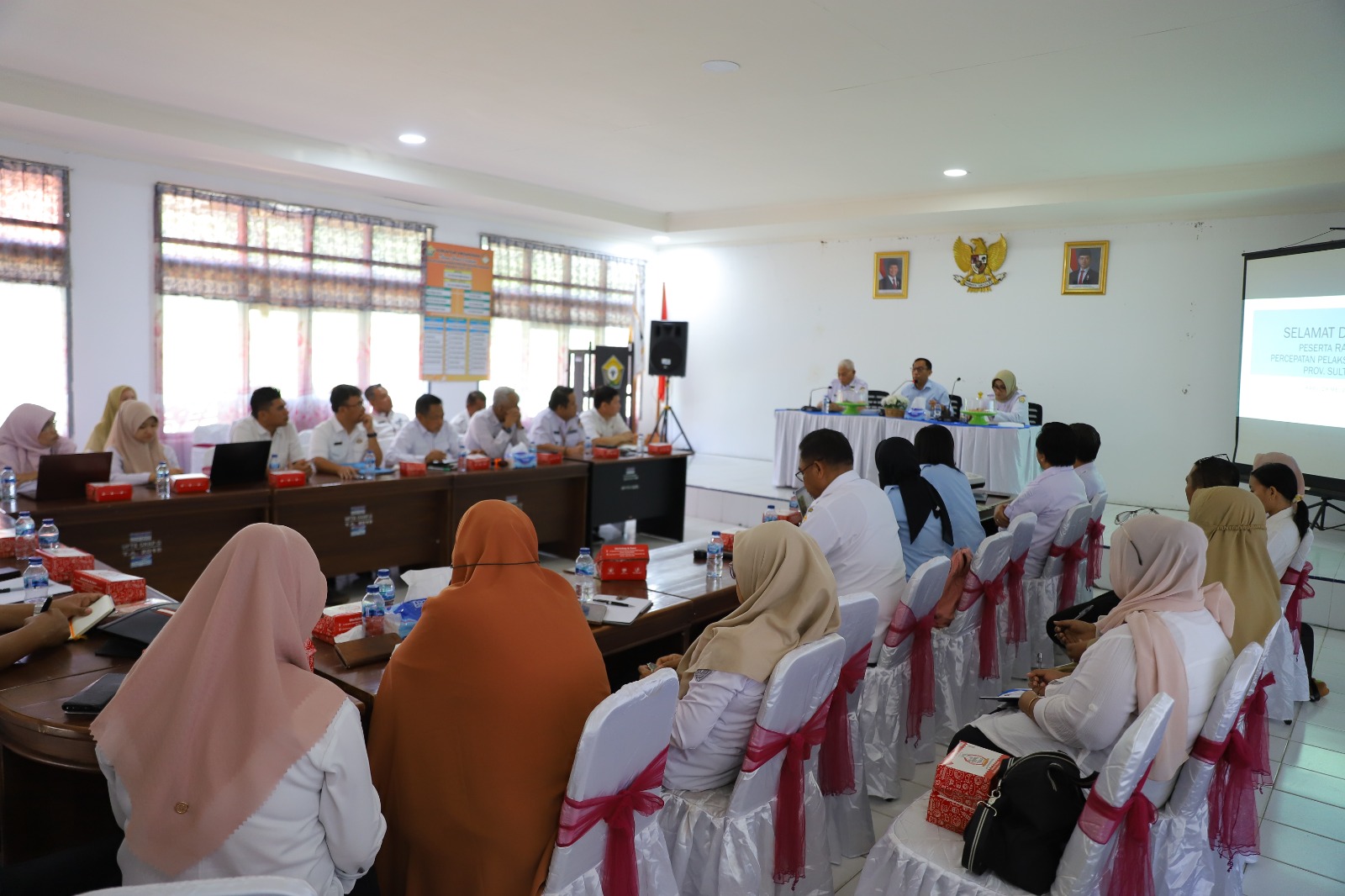 Sekda juga mengungkapkan bahwa rapat ini menghadirkan berbagai unsur penting baik dari perangkat daerah maupun instansi vertikal. Hadir dalam kegiatan ini antara lain Asisten Perekonomian dan Pembangunan Setda Prov. Sultra, Kepala Dinas Ketahanan Pangan (Ketapang), Kepala Dinas Koperasi dan UMKM, Dinas Perkebunan dan Hortikultura, Dinas Lingkungan Hidup, Dinas Cipta Karya, Dinas SDA dan Bina Marga, Perwakilan Disperindag, Dinas Kelautan dan Perikanan, hingga Badan POM Kendari. Semua berkumpul untuk menyatukan persepsi dan strategi dalam mendukung program MBG.